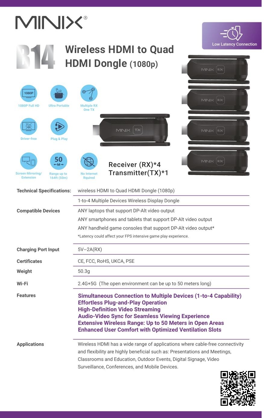 MINIX B14 Wireless HDMI to Quad HDMI Dongle (1080p)