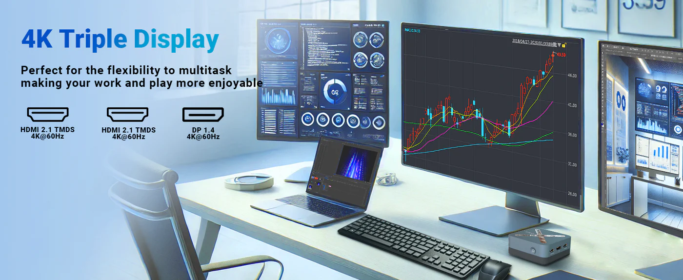Dual Gigabit Ethernet | Triple 4K@60Hz Screen Display | 802.11AX Dual Band Wi-Fi6 | Windows 11