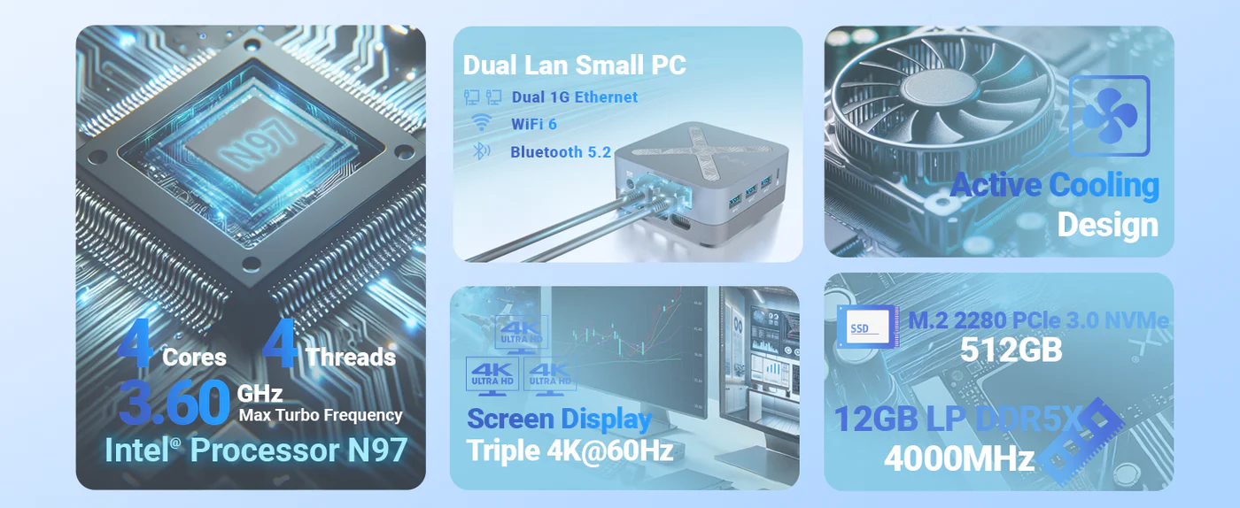 Intel UHD Graphics | Active Cooling Design | Intel Processor N97(64-bit) | LPDDR5X-4000MHz