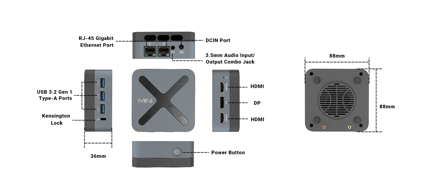 Experience the innovative compact design of our Mini PC, measuring just 88×88×42mm. This lightweight and energy-efficient device seamlessly fits into any workspace, making it a perfect choice for those seeking both performance and portability. Moreover, certified for global compliance, including FCC, CE, UKCA, RoHS, WEEE, and PSE, it meets rigorous safety and environmental requirements.
