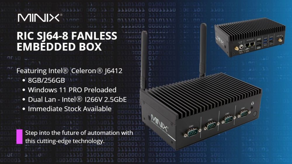 MINIX has developed a new industrial PC with Windows 11 Pro and an integrated Intel Elkhart Lake J6412 Celeron® CPU for POS systems, medical systems, fuel stations, security systems, industrial automation, IoT solutions, digital signage applications such as information kiosks, advertising kiosks, and more.
