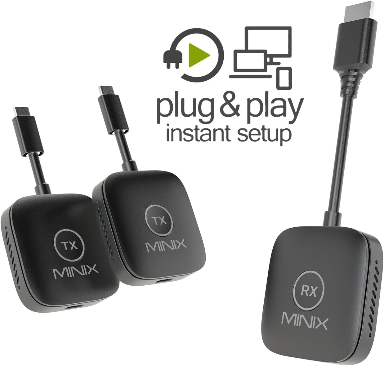 dongle wireless 2 in 1 MINIX NEO B21 offre una funzionalità straordinaria che consente di connettersi a più dispositivi contemporaneamente. Puoi facilmente duplicare o estendere lo schermo su televisori e proiettori, rendendolo perfetto per presentazioni, streaming o giochi .